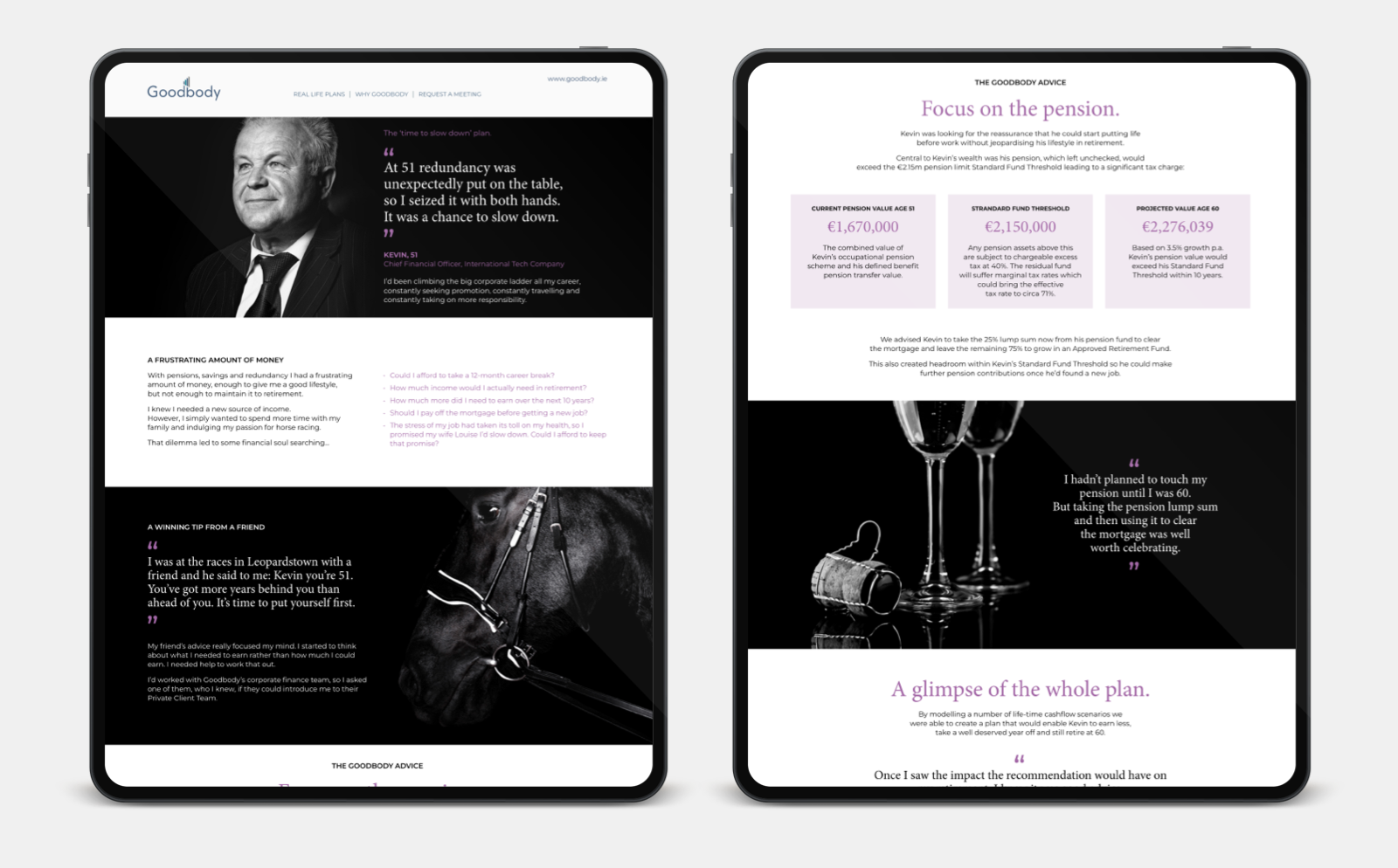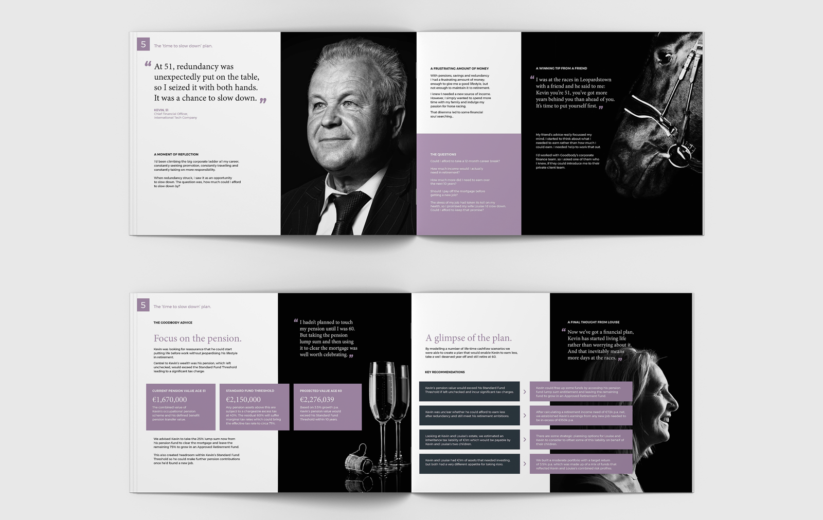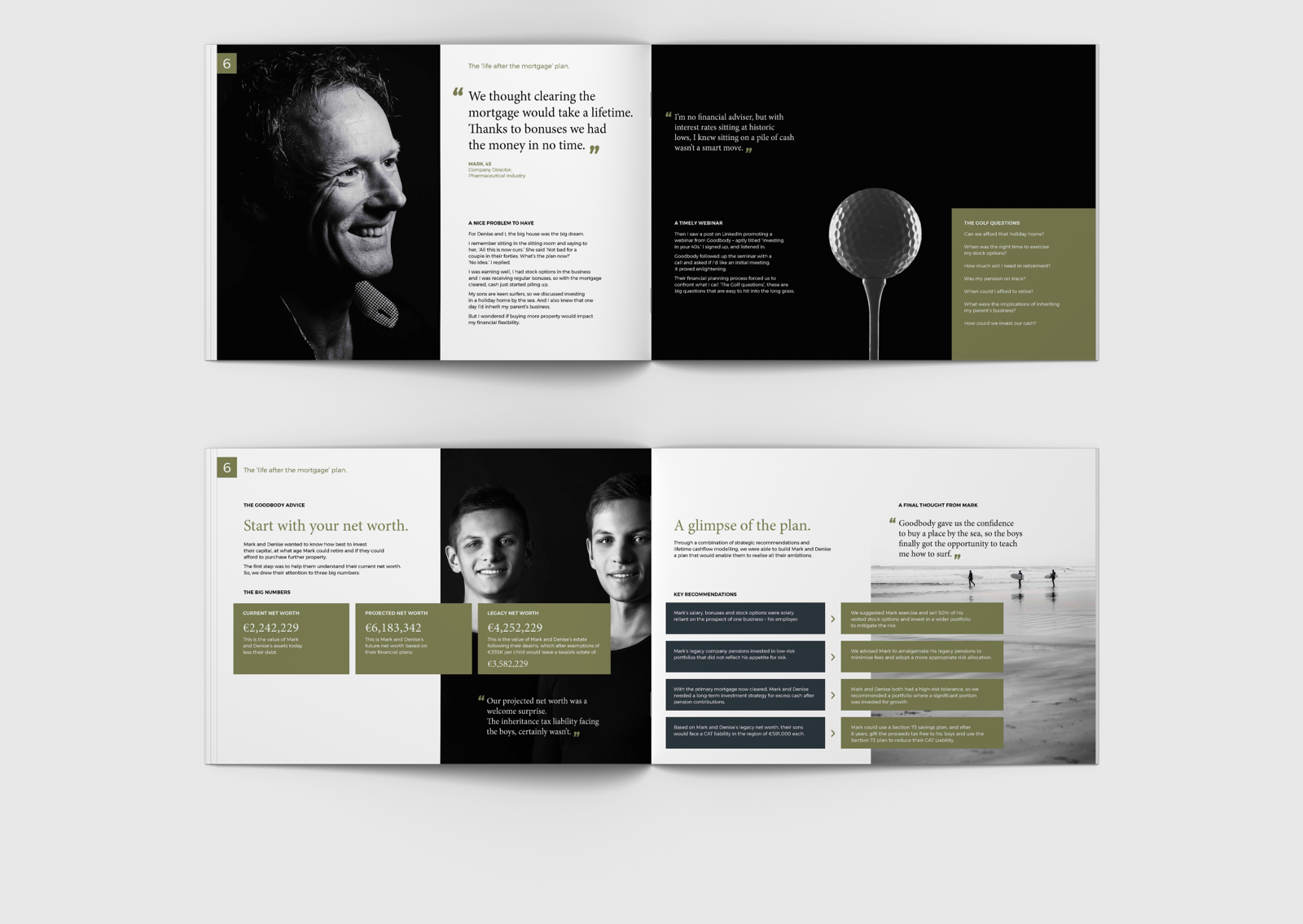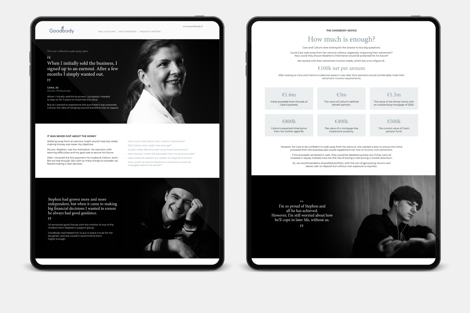 So, we worked with the Goodbody team to identify and craft a series of case studies. Each one captures a different client scenario as well as the advice offered by Goodbody Wealth Planning.