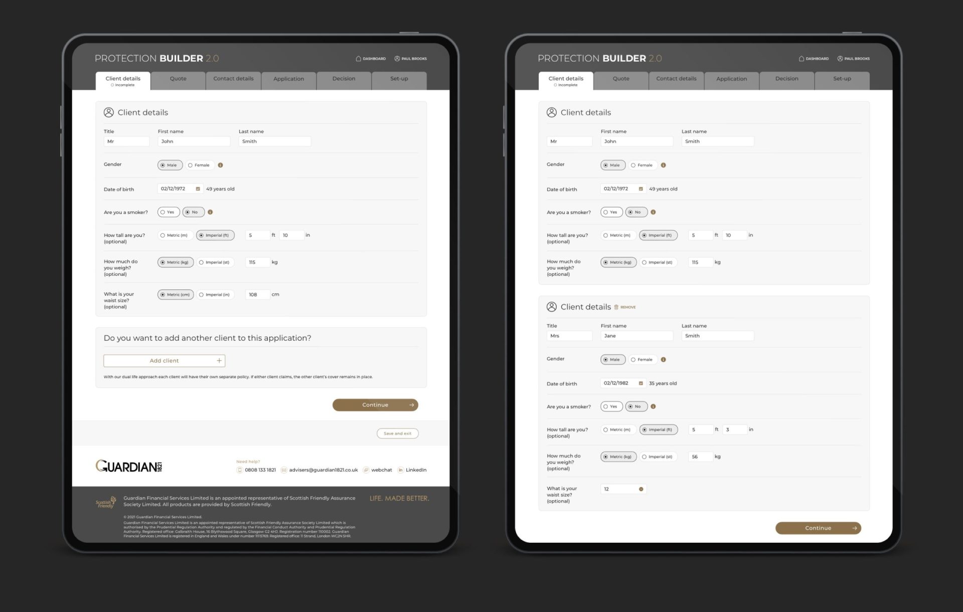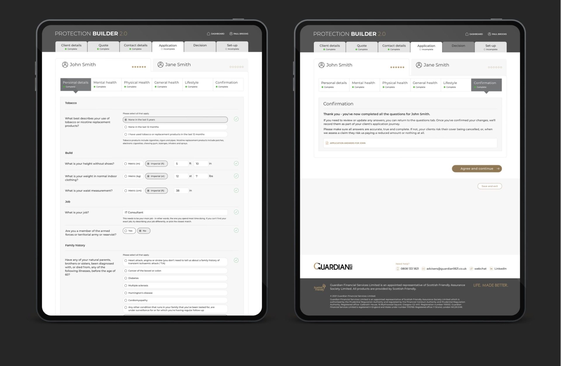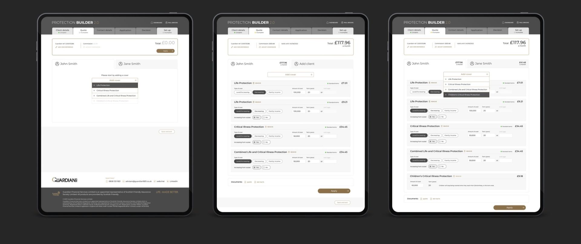 By placing advisers at the centre of the design process through continuous user testing, we developed Protection Builder 2.0 – the second iteration of Guardian’s quote-and-apply platform.